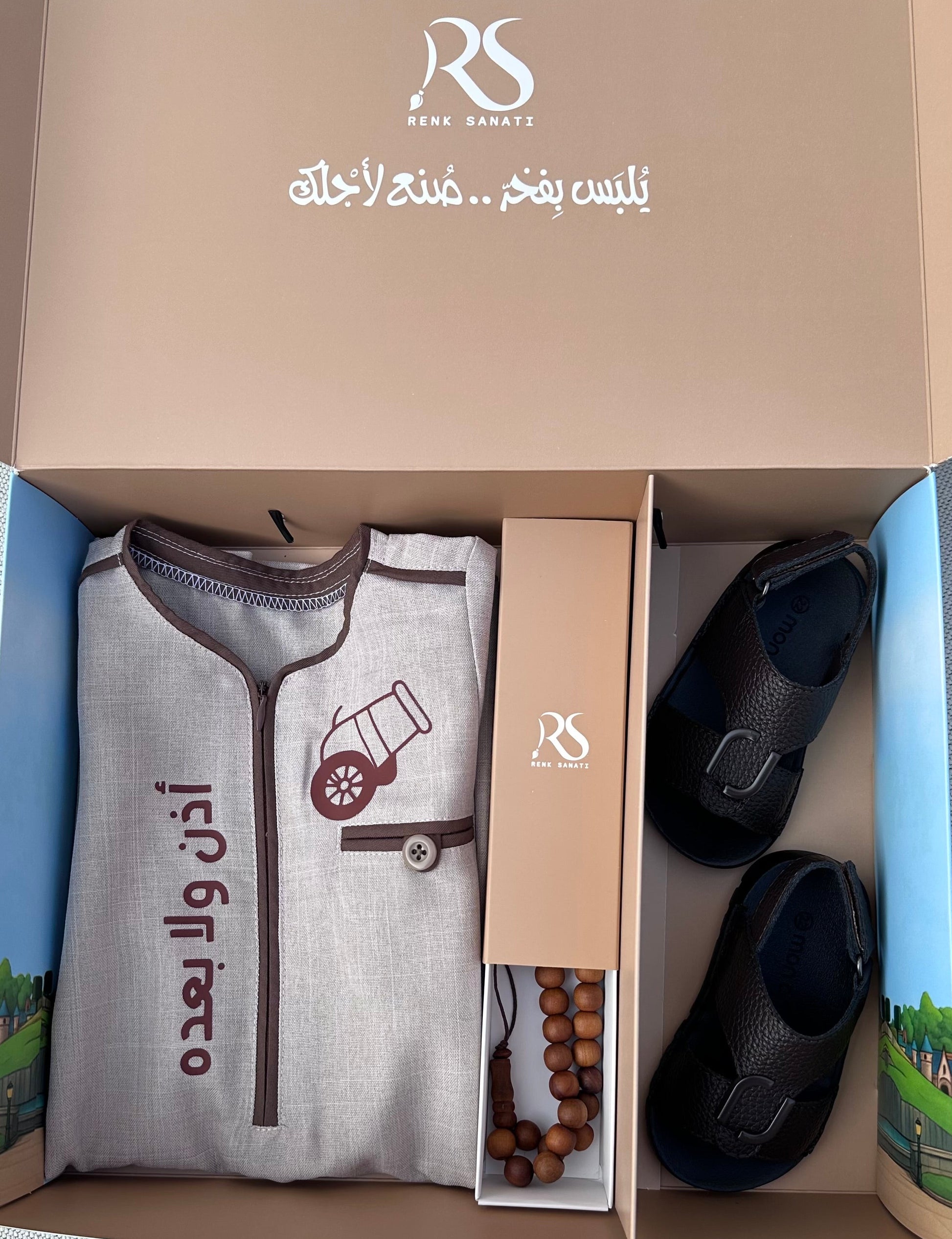 يشمل (الكندورة)+(النعال)+(المسباح)