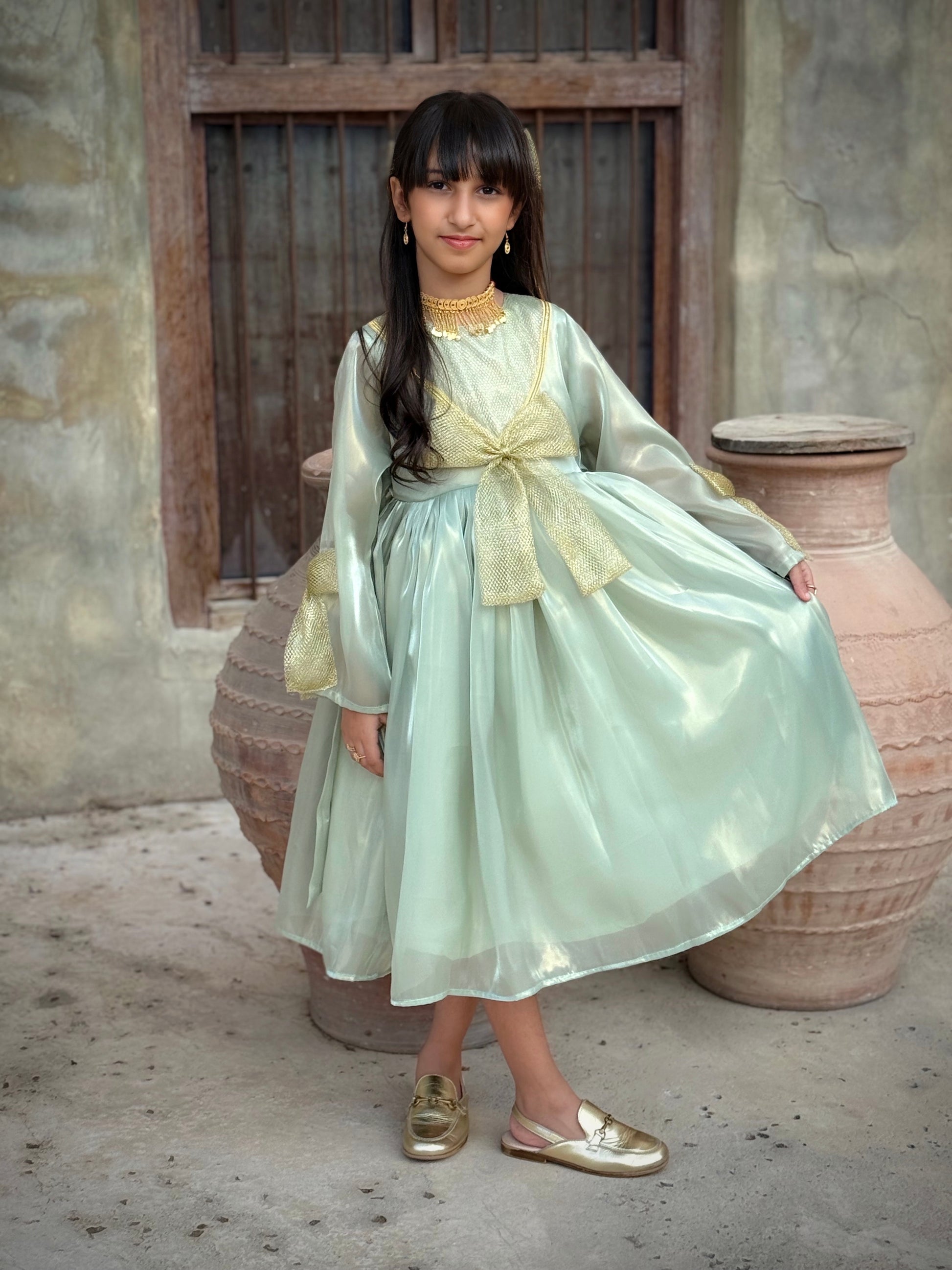 الفستان مع الفيونكة للشعر